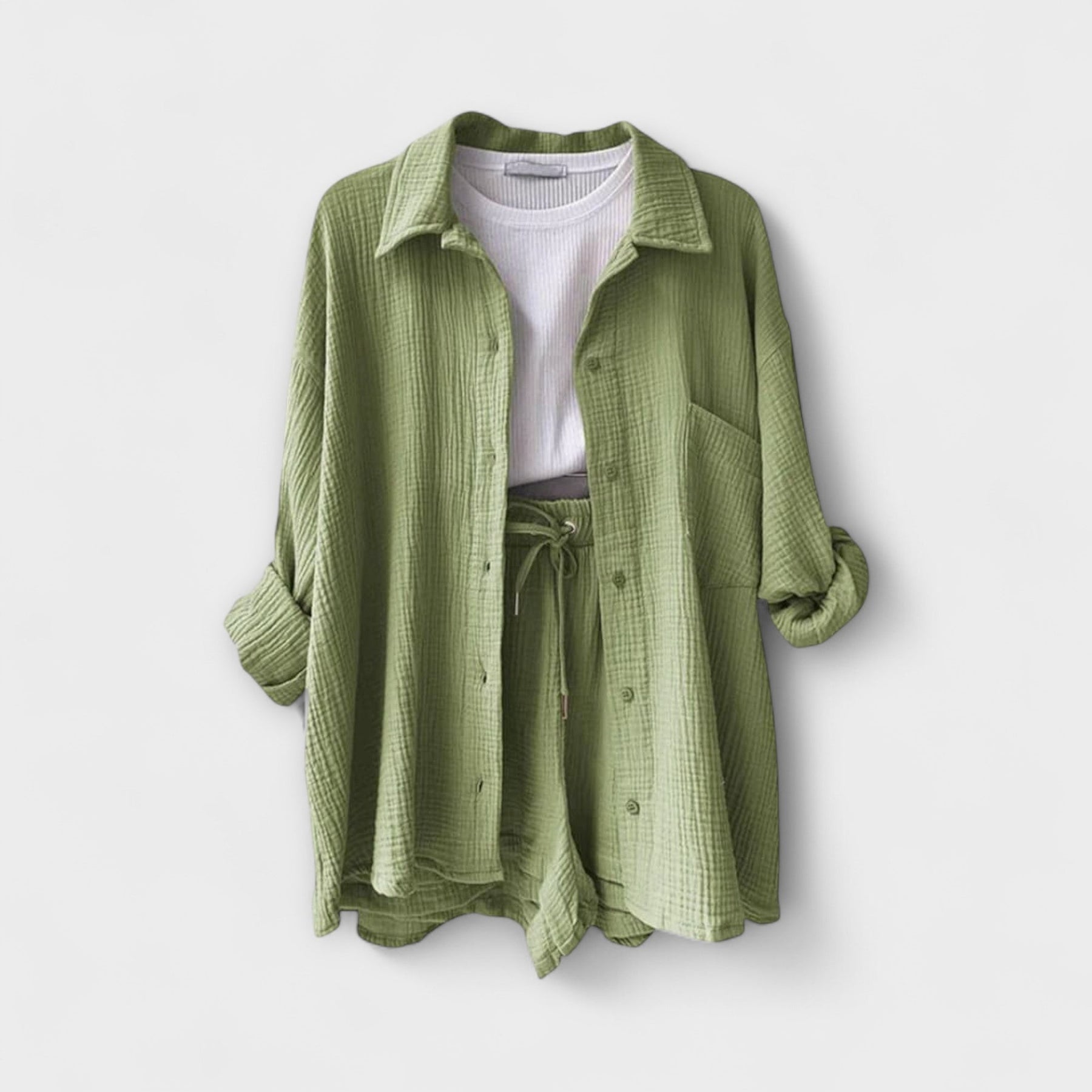 Prigrlite beznaporanu eleganciju sa ovim dvodelnim setom—napravljenim za tople dane i dizajniranim da pruži i stil i udobnost u svakoj prilici.